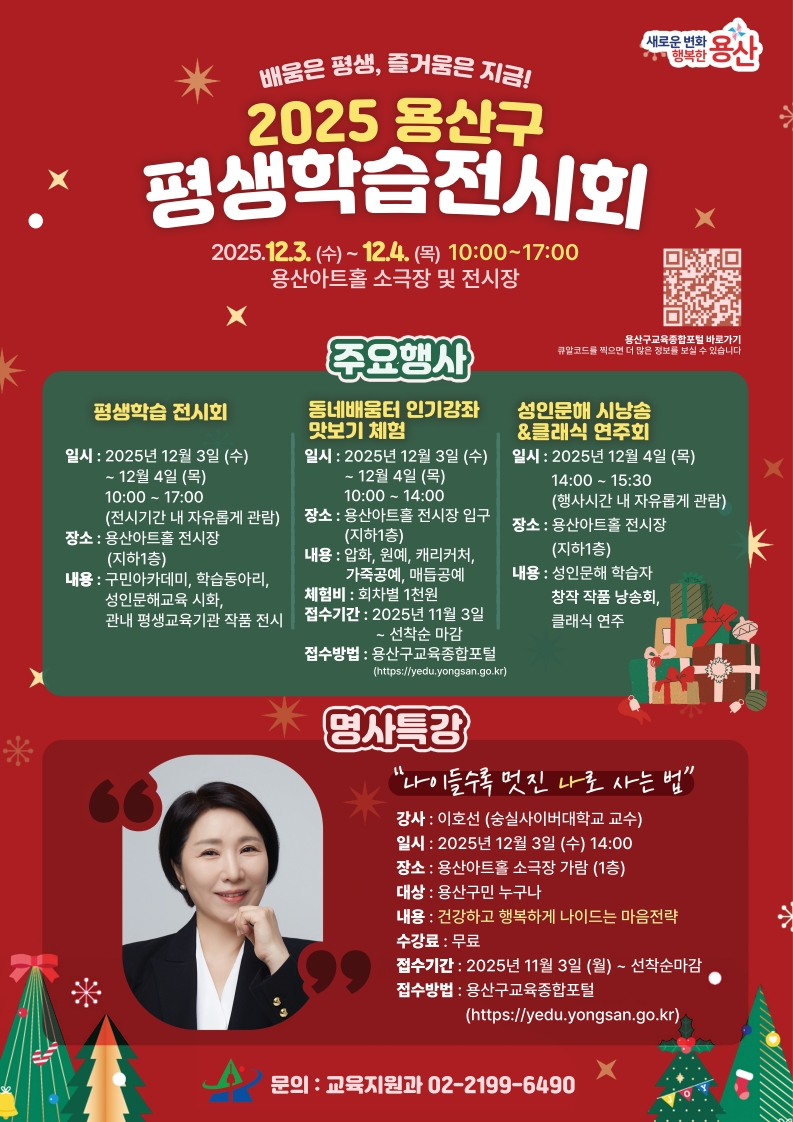 『2025년 용산구 평생학습 전시회』가 12월 3일(수)~4일(목), 용산아트홀에서 열립니다.