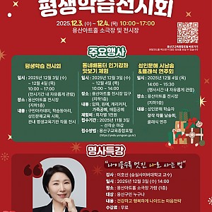 배움은 평생, 즐거움은 지금!『2025년 용산구 평생학습 전시회』가 12월 3일(수)~4일(목), 용산아트홀에서 열립니다.구민이 함께 만든 다양한 작품 전시부터 인기 강좌 체험, …