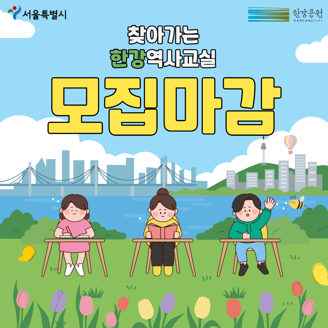 2026년 한강이야기여행 찾아가는 한강역사교실(학교) 모집 마감 안내 우리미래 0 5 4시간전 2026 찾아가는 한강역사교실 <처음 만나는 우리동네, 한강> 학교 대상 프로그램 모집이 마감되었습니다. 많은 관심과 신청을 보내주신 모든 분들께 진심으로 감사드립니다. 앞으로도 더욱 알차고 뜻깊은 프로그램으로 여러분을 찾아뵐 수 있도록 최선을 다하겠습니다.